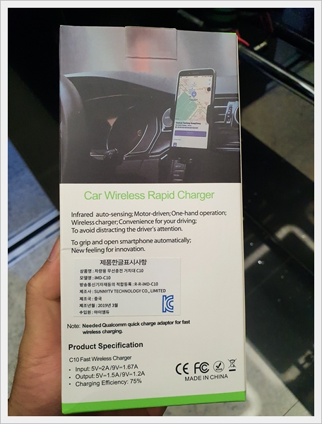 차량용 급속 무선충전기 겸 거치대인 C10은 고속 무선 충전 기능이 있지만 충전기는 별매라 테스트해보진 못했습니다.