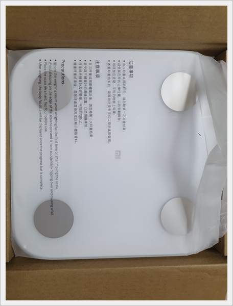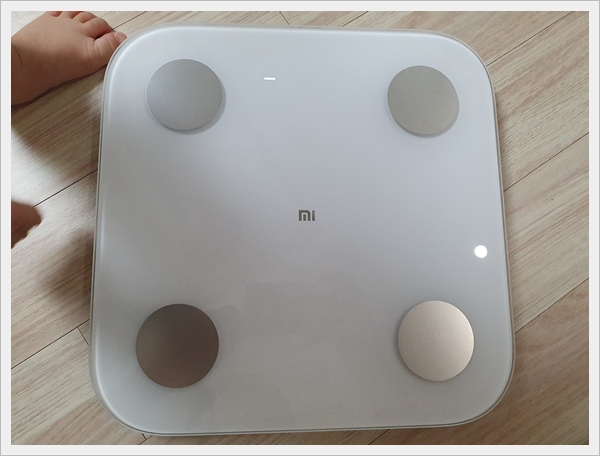 하얗고 심플한 샤오미 저울! 뒷편에는 AA 건전지가 4개나 들어갑니다.