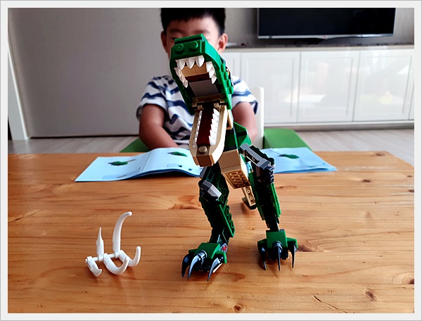아직 트리케라톱스는 조립해보지 못했지만, 이 레고 블록의 최대 장점은 3가지 공룡 중 마음에 드는 걸 조립할 수 있단 점이고, 최악의 단점은 3종 중 1종밖에 조립형태를 유지 못한다는 점입니다.