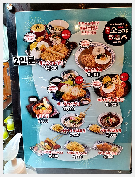 피터스 원 내부에 위치한 소노야 메뉴판입니다.