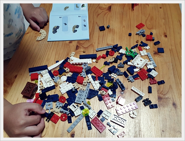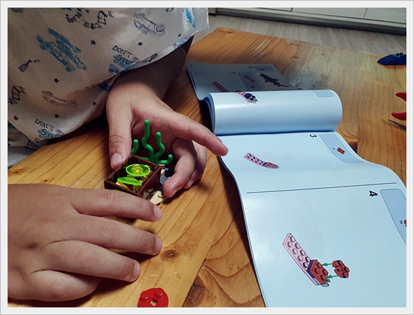 설명서를 보며 꽃게 조립을 시작하는 5살 아들!