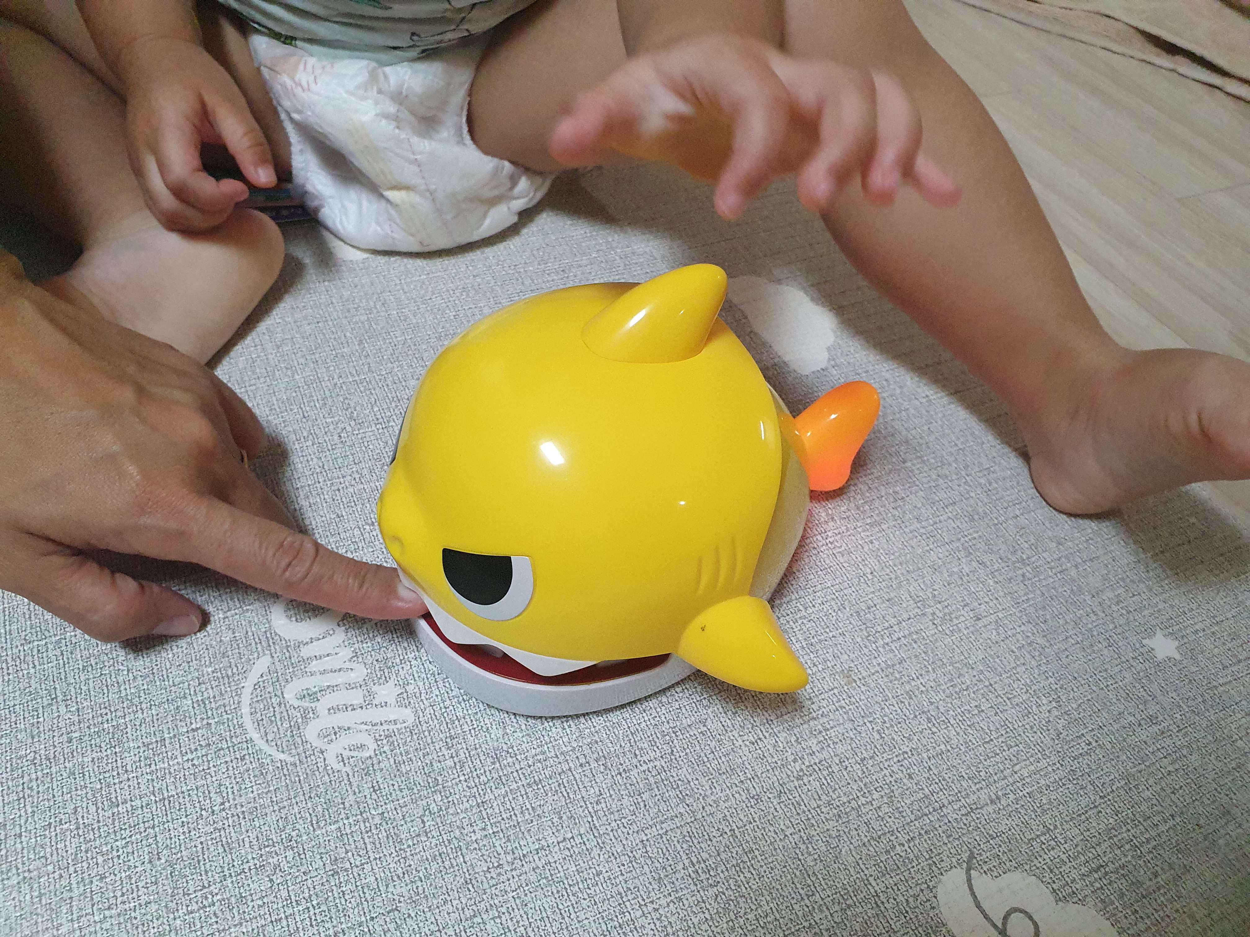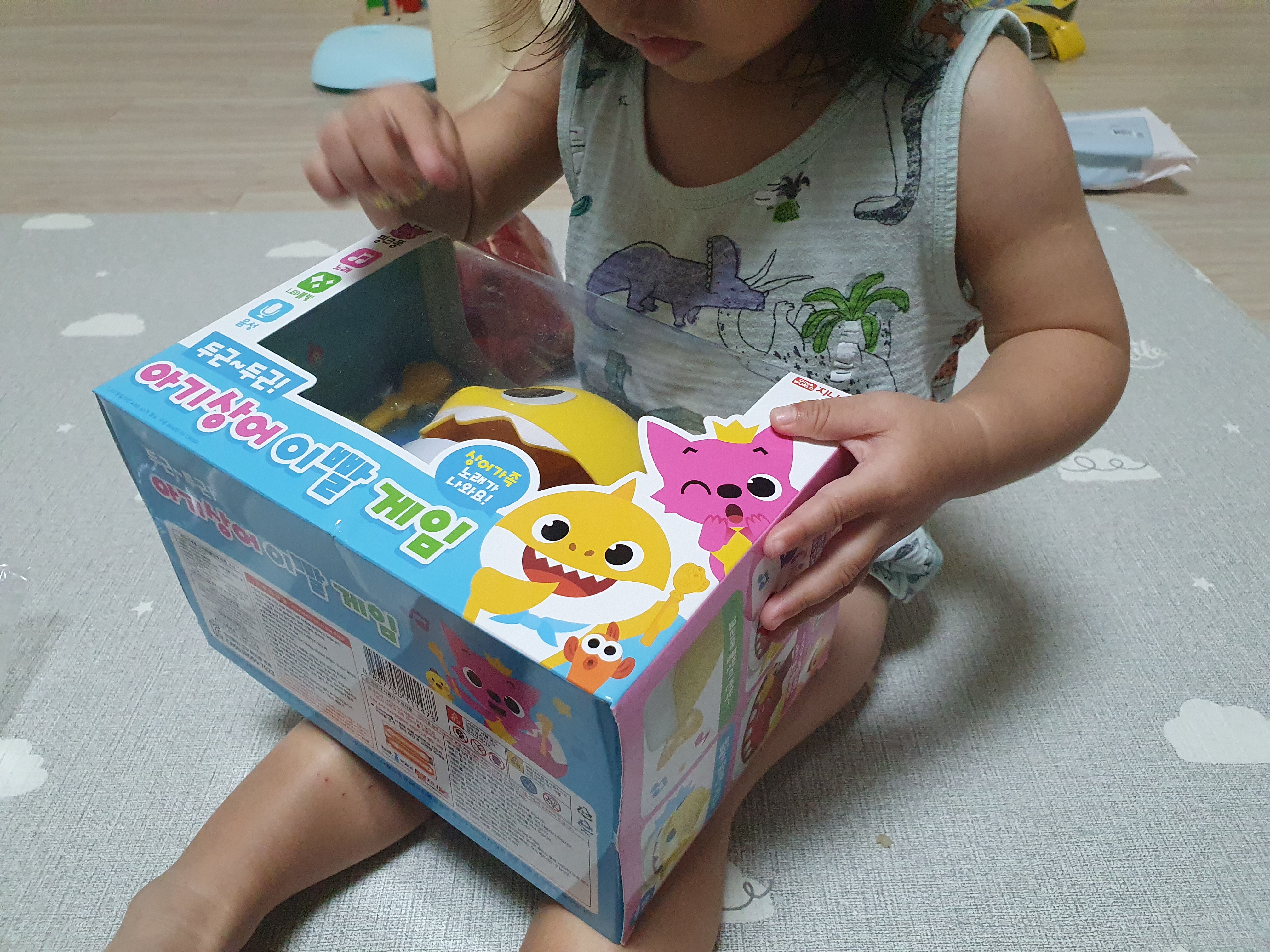 막상 시범을 보이며 함께 게임을 해보지만 아기상어 노래를 듣는걸 좋아하지, 게임에는 아직 흥미가 없네요.