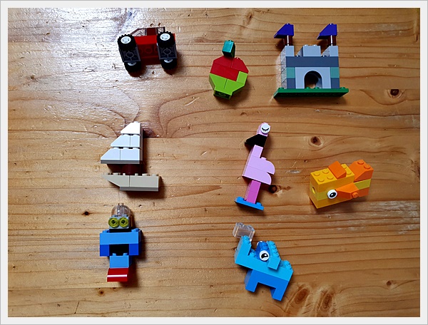 가방 크기 대비해서 브릭 양은 적당해 보입니다. 함께 들어있는 책자를 보고 조립해보니, 뭔가 아기자기하게 많이 만들 수 있습니다. 5살 남자아이가 갖고 놀기엔 적당한 난이도!