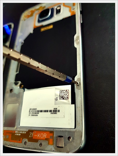 약 10분동안 겨우 분리한 갤럭시 S6 하우징입니다.