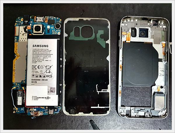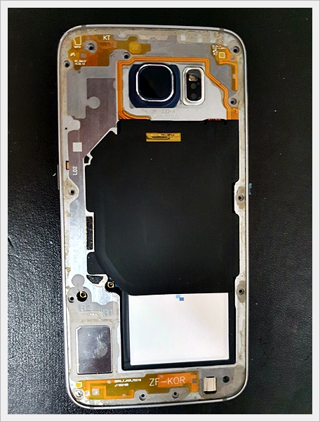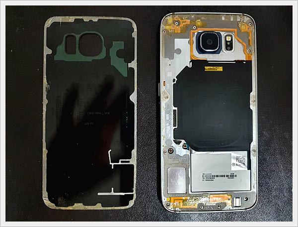 갤럭시 s6 배터리 교체를 위한 뒤판은 깔끔하게 분리가 되었습니다.
