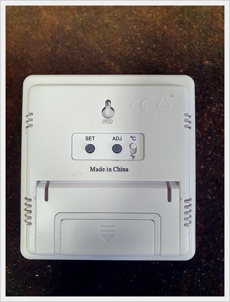 뒷면입니다. 시간 조정과 온도 표시 단위를 설정할 수 있습니다.