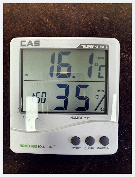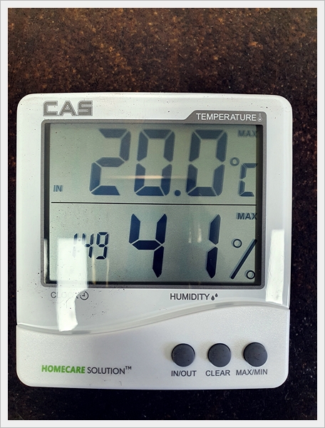 설치가 완료된 CAS 온습도계 TE-201의 모습입니다.