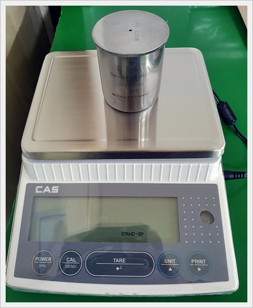 이렇듯 비중 컵을 활용하면 어떠한 액체든 간단하게 측정 할 수 있습니다.