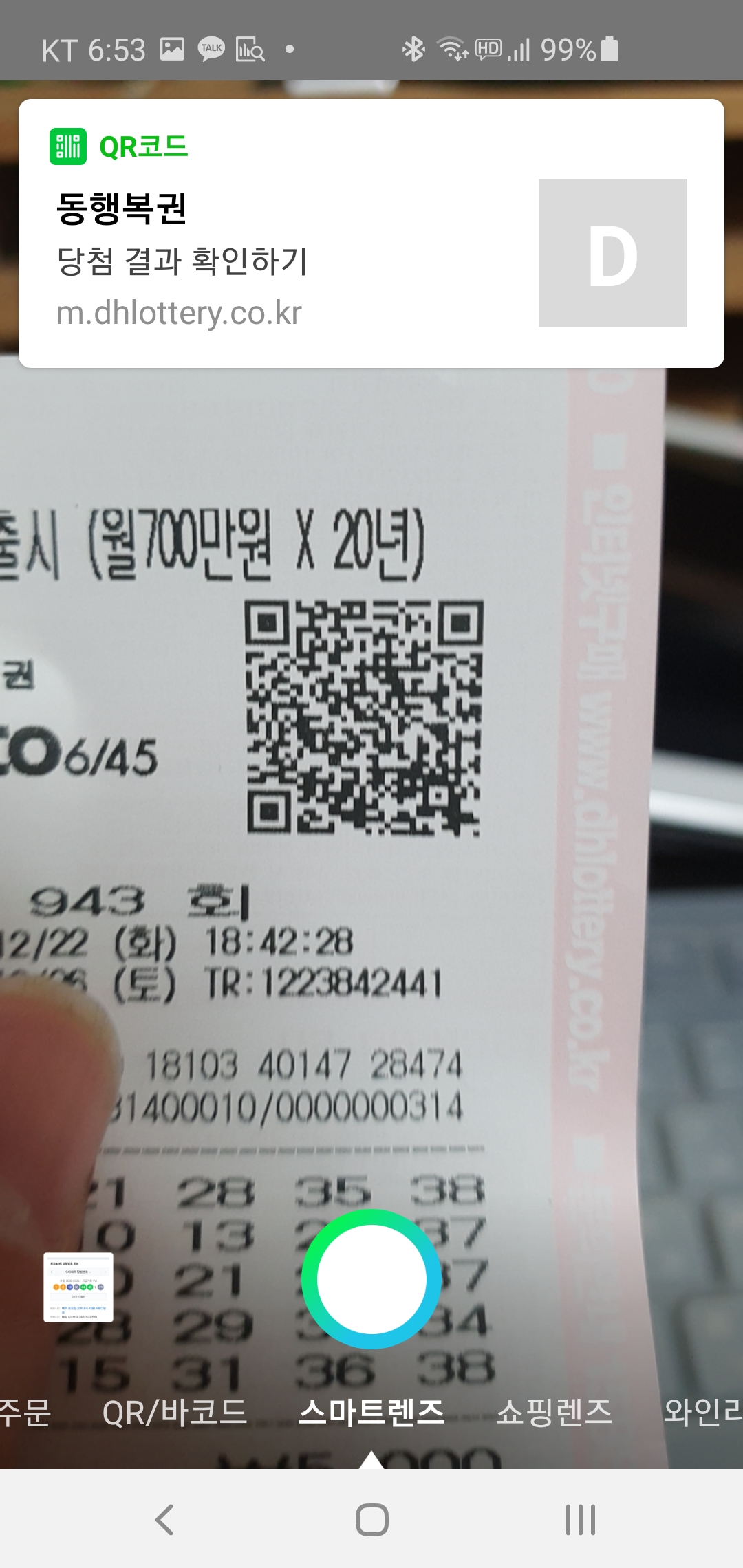 로또 종이에 찍혀있는 QR코드를 확인하는 건데요.