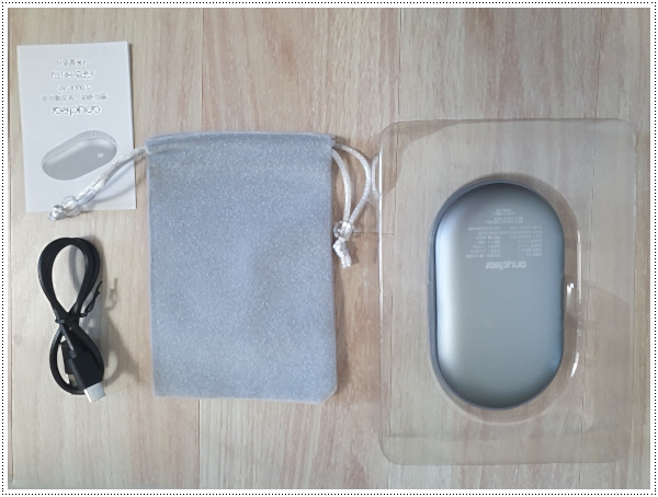 구성품도 단순하여 충전 케이블, 파우치, 전기 손난로 본품, 설명서로 되어 있습니다.