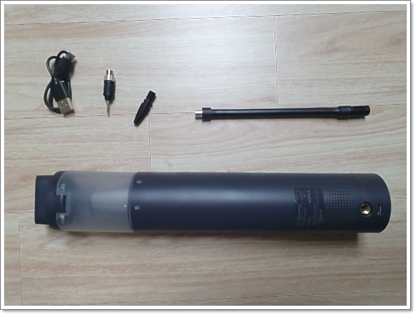 샤오미 Lydsto 핸디형 에어펌프 진공청소기의 상자를 열어 보니 구성품이 보입니다.