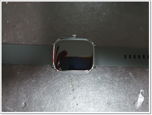 박스 가운데 위치한 샤오미 어메이즈핏 gts2 mini 워치!(밴드인가)