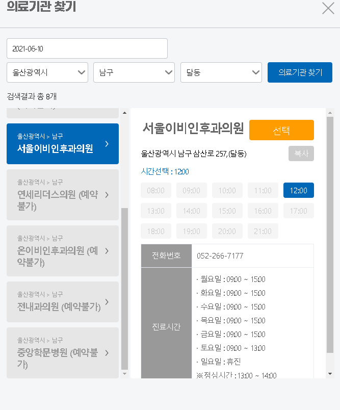 저는 울산시 남구, 중구, 북구 등 검색을 해 보았습니다.