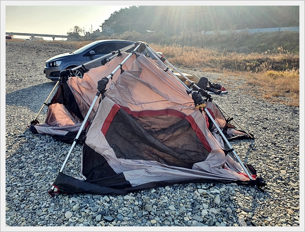 (옆자리 텐트는 폴대가 빠졌더군요...)
