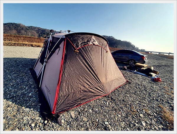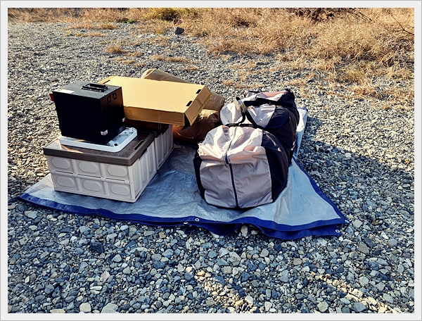 한쪽씩 자리를 잡으며 패킹을 시작합니다. 노지라 사람도 없고 조용하고~ 날씨는 12월이라 쌀쌀했습니다.