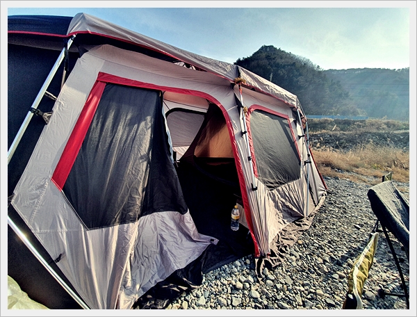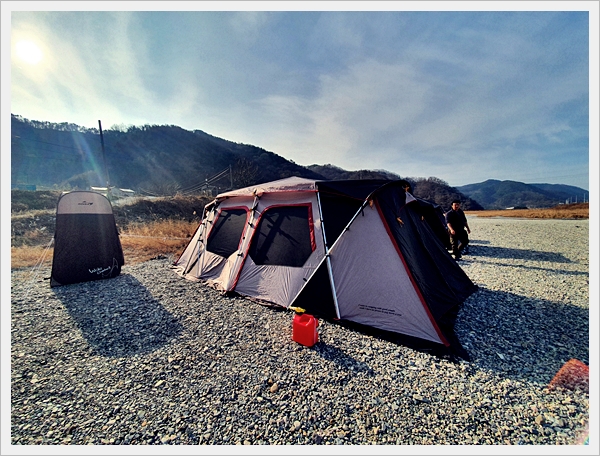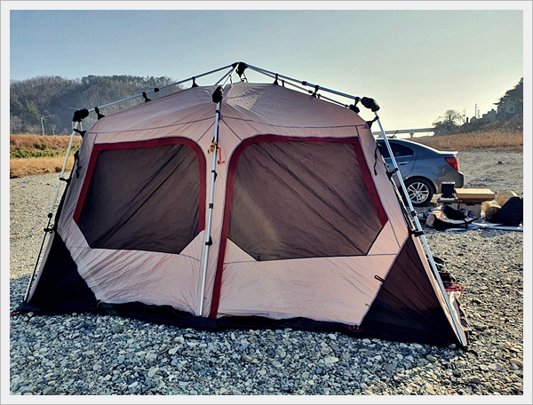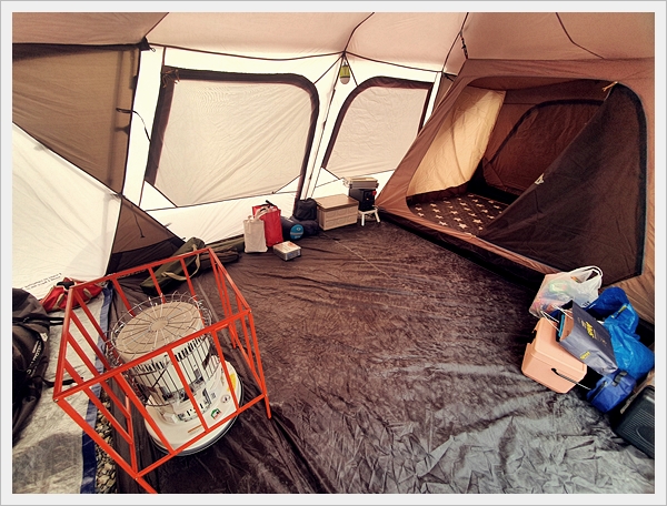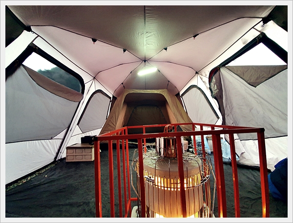 1. 큰 텐트. 동계캠핑을 대비해 난로 설치가 용이한 사이즈. 실내 활동이 가능한 사이즈.