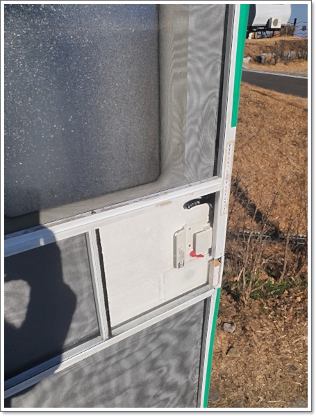 카라반 입구 바로 옆에 위치한 전원 버튼입니다.