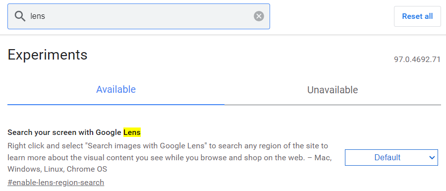그러면 이렇게 메뉴들이 뜹니다. 우리가 찾는 구글 렌즈는 안 보이네요. 검색창에 lens를 입력하여 검색해 줍니다.