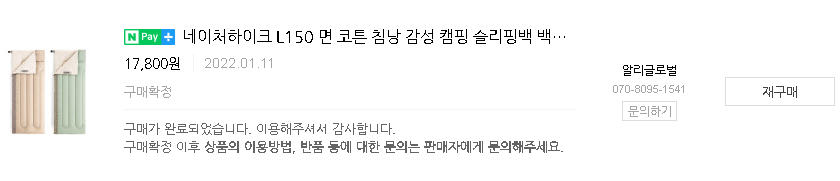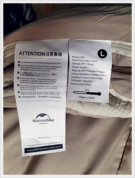 가족캠핑을 즐기기 위해 침낭을 알아보던 중 네이처 하이크 L150의 저렴한 가격이 마음에 들어 시험적으로 구매했습니다. 물건을 받아서 세탁을 해보니 시중에 파는 7~8만 원대 침낭과 차이점을 거의 느낄 수 없었습니다.
