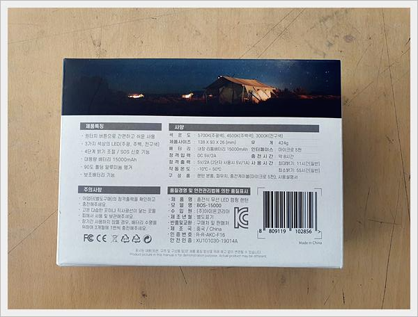 BOSSWIZ 충전식 무선 LED 캠핑 랜턴 BOS-15000의 박스 패키징은 상당히 깔끔하게 잘 되어 있었습니다.