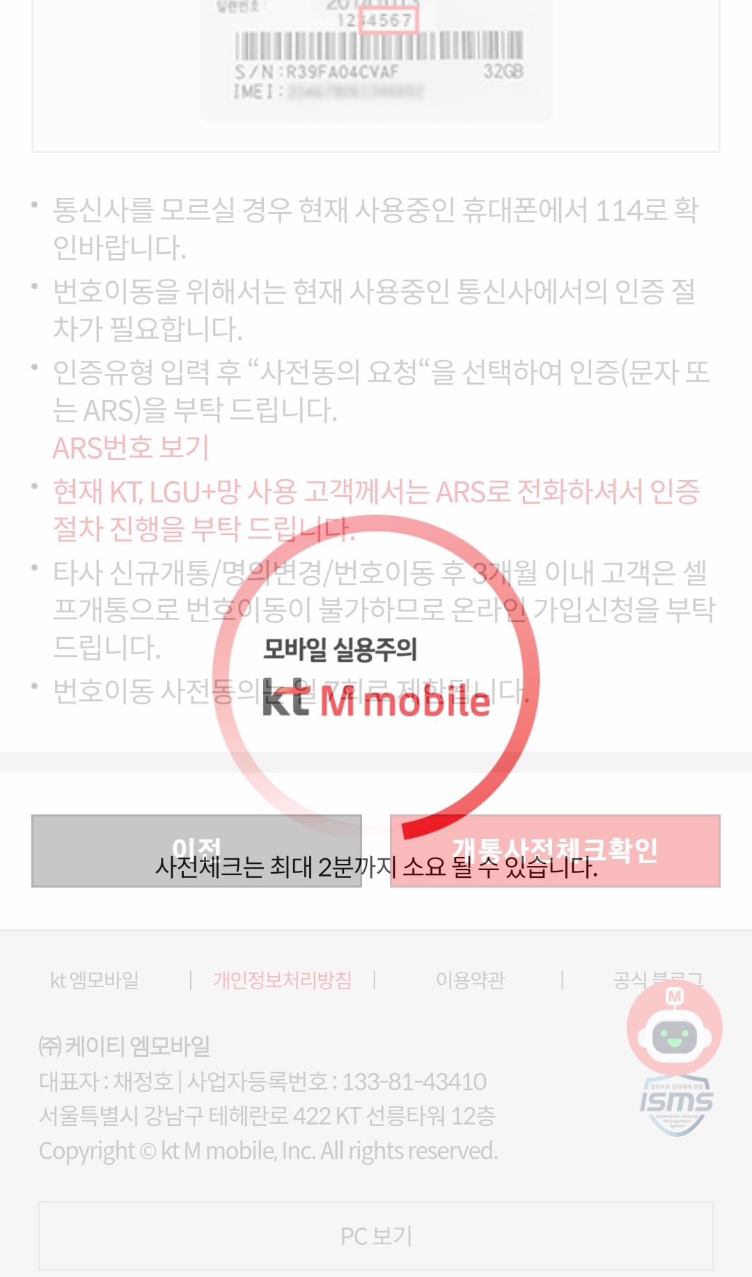그리고 케이티 엠 모바일(KT M MOBILE) 개통 완료!!!!