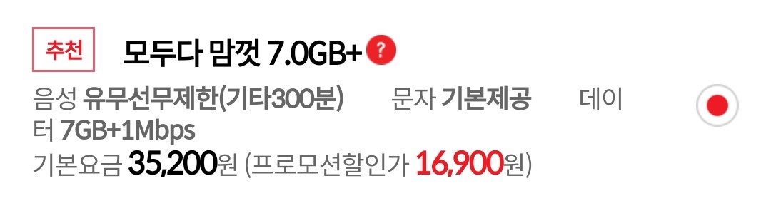 케이티 엠 모바일(KT M MOBILE)에서 사용할 요금제는 모두 다 맘껏 7.0GB로 정했습니다.