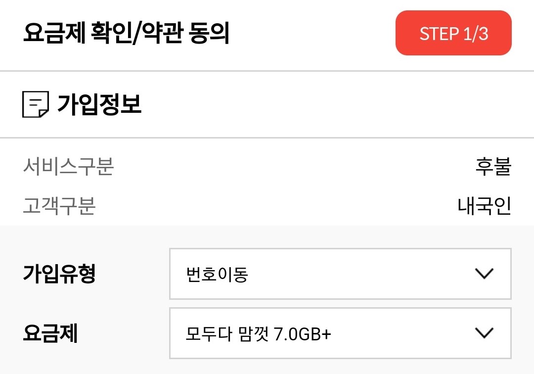 가입유형과 요금제를 다 정하고 빈칸에 모든 정보를 입력합니다.