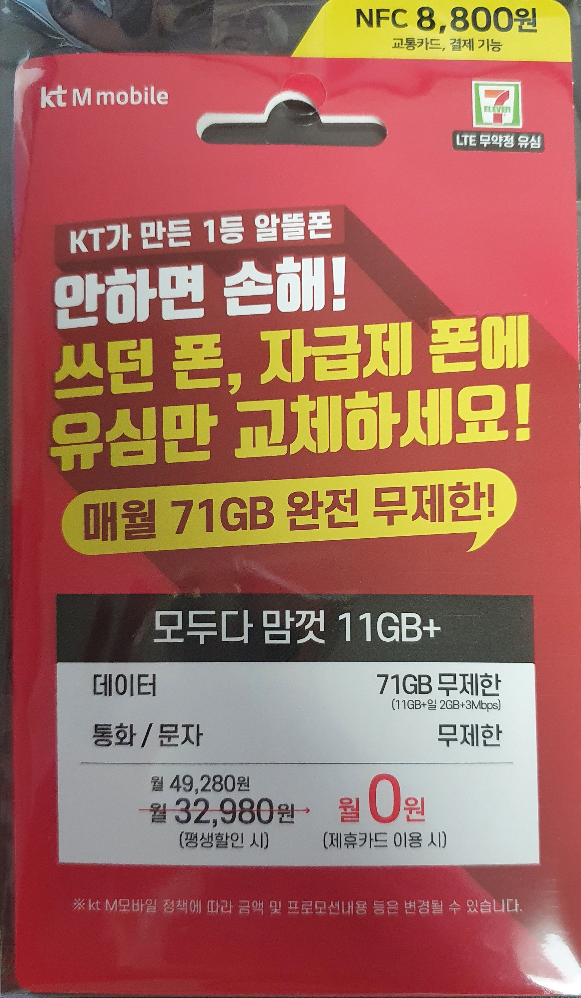 케이티 엠 모바일(KT M MOBILE) 유심 8,800원이네요.
