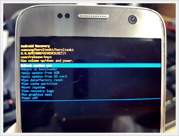 볼륨 상 + 전원 + 홈을 꾹 눌러 공장초기화를 시도했습니다.