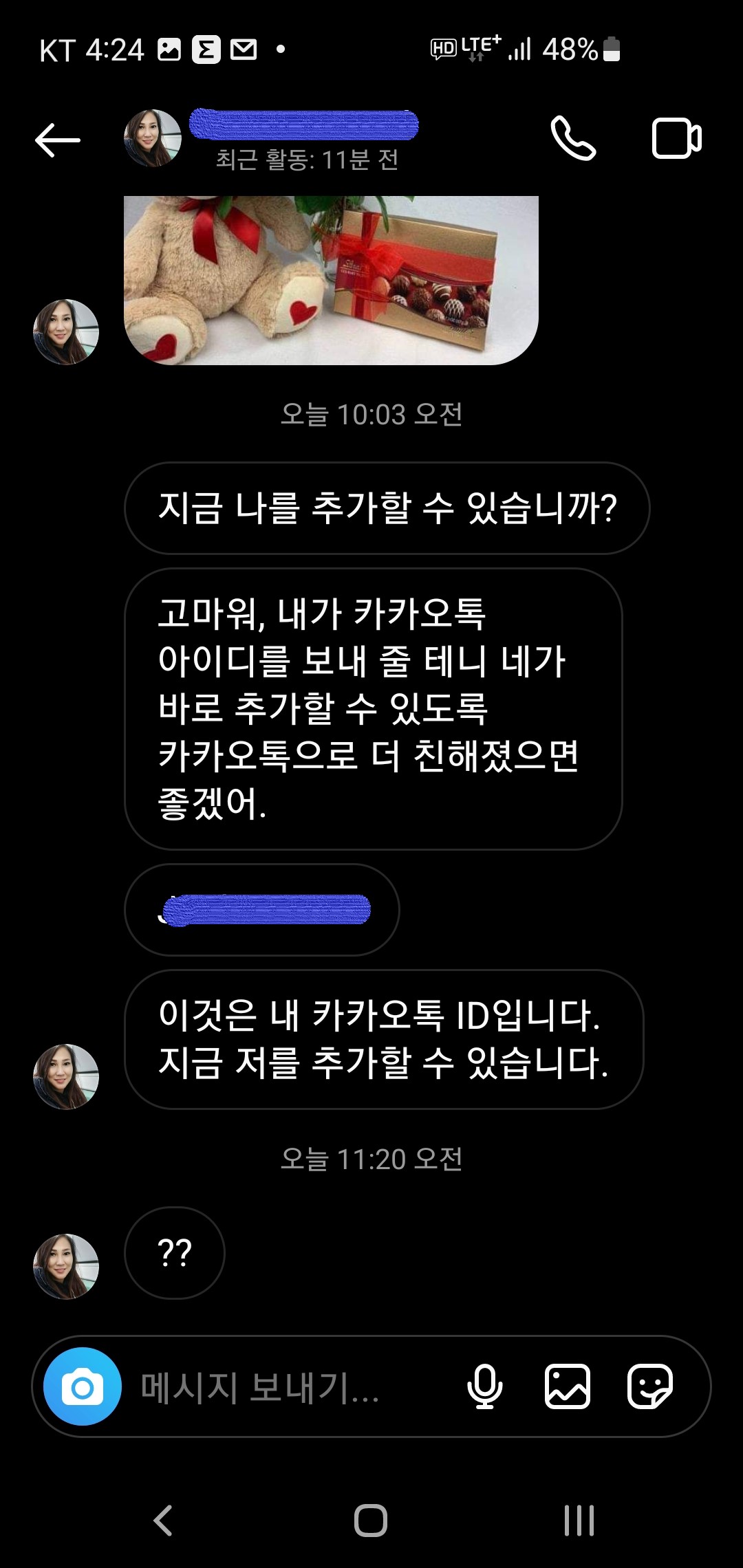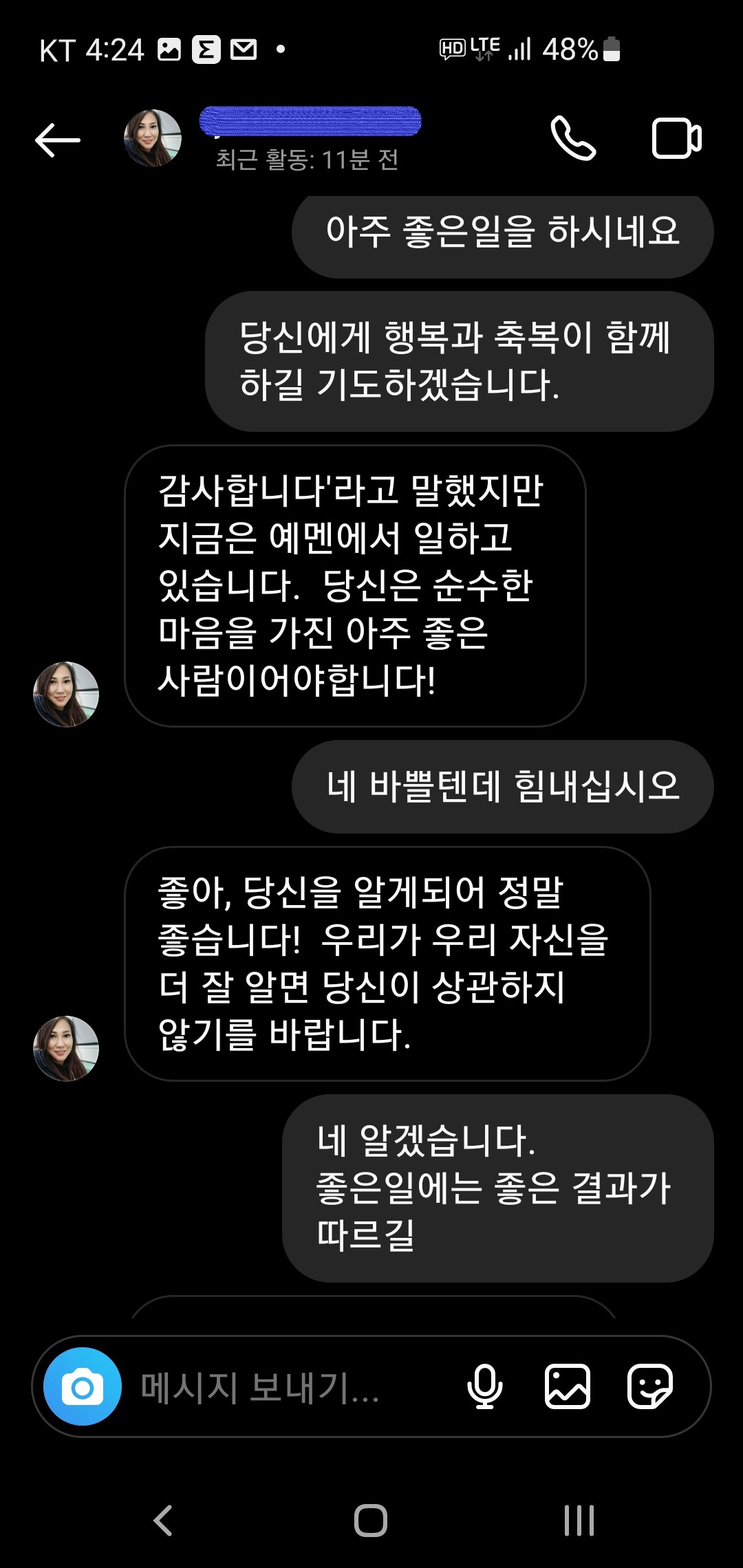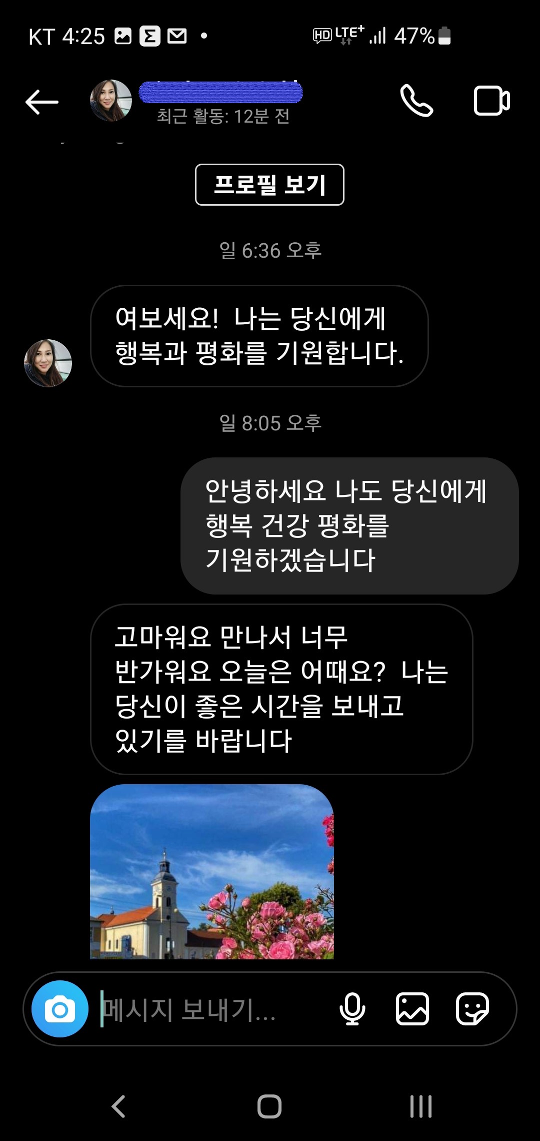 얼마 전, 알지 못하는 이로부터 인스타 메시지를 받게 되었습니다.