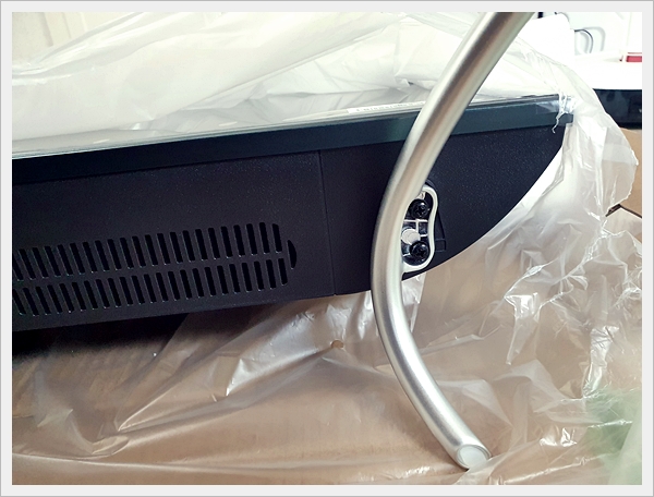 스탠드형을 구매하였기에 발을 먼저 설치하고 TV를 위치시켜 주었습니다.
