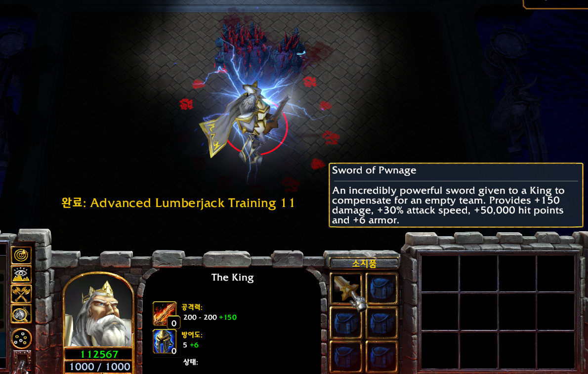 싱글일 땐 상대 왕은 특수한 유니크 아이템을 착용하고 나타납니다. 그래서 죽이기가 조금 힘들어요.