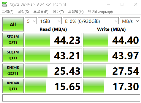 테스트를 위해 크리스털 디스크마크를 설치하여 실행해 줍니다.