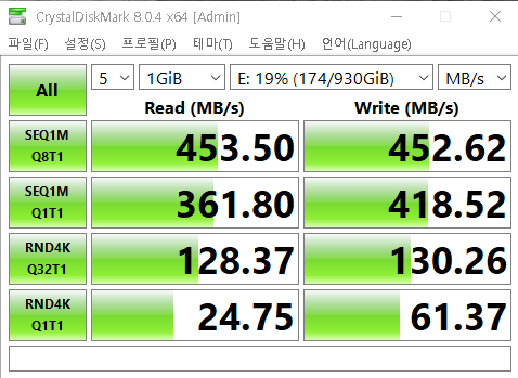 의외의 결과입니다. 그래도 삼성 SSD보단 빠르리라 생각했는데...
