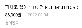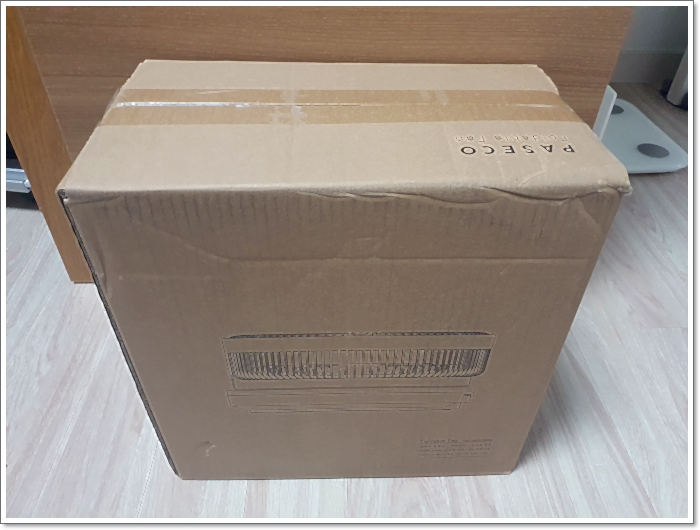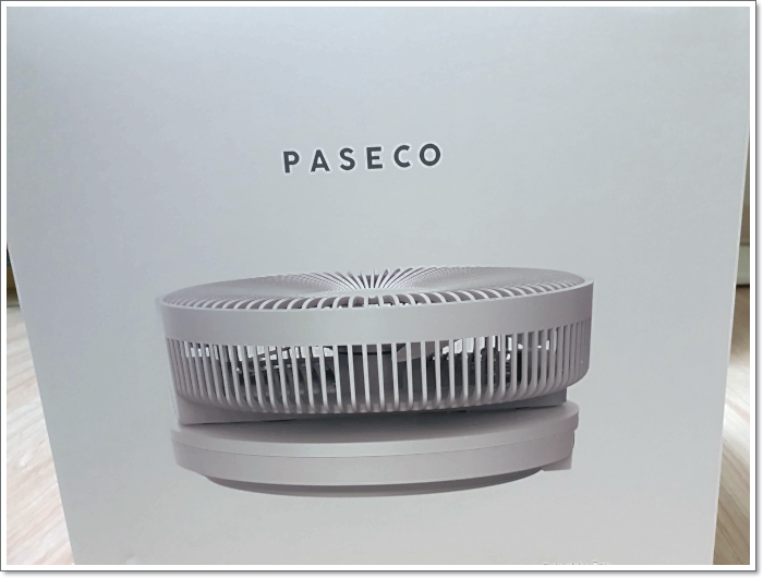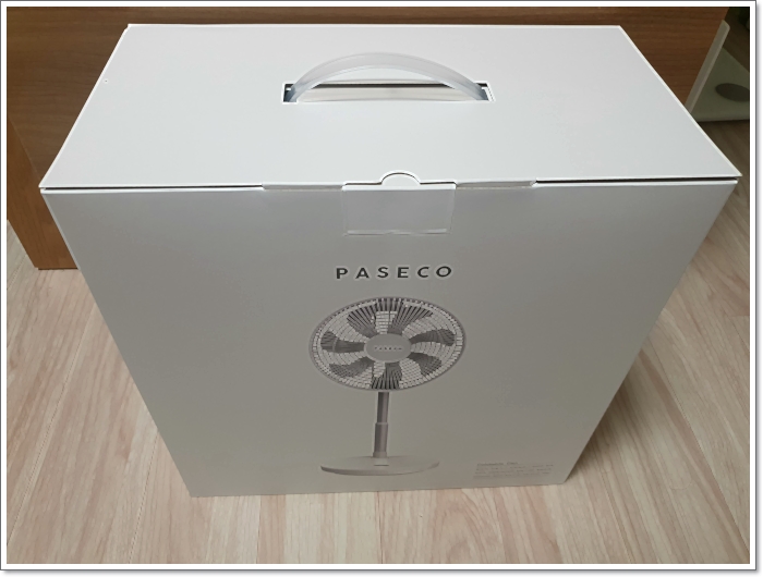 마치 데자뷰를 보는 듯한 느낌의 파세코 접이식 코드리스 DC 팬의 패키지입니다.