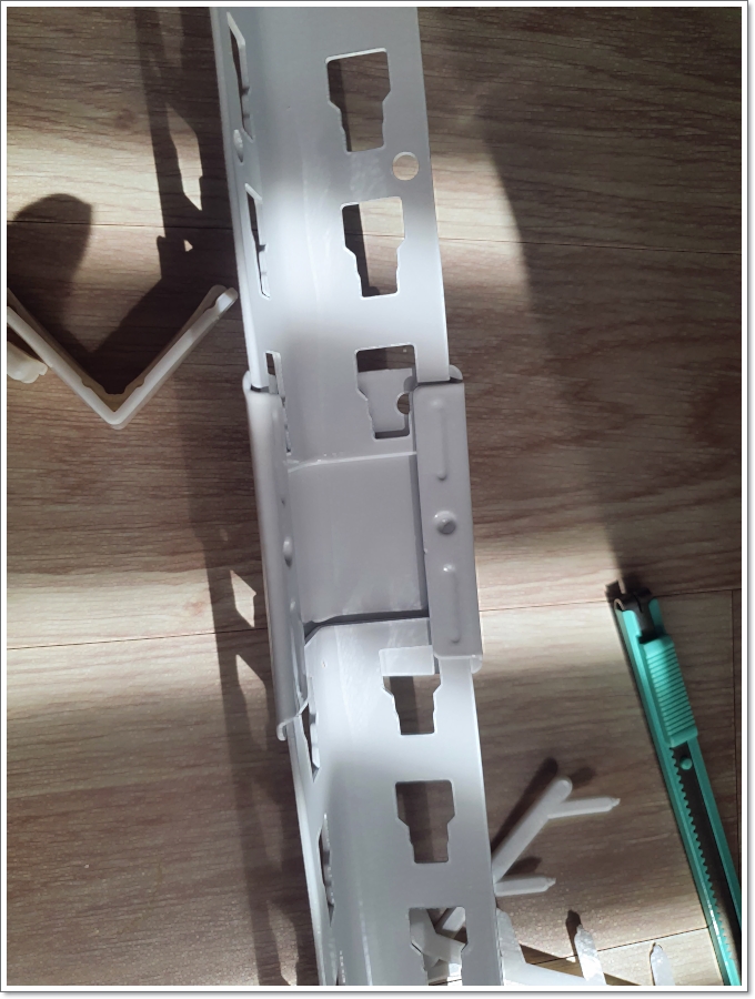 그리고 구석에 가서 스피드 랙의 가로 연결부를 설치하여 고정해줍니다.