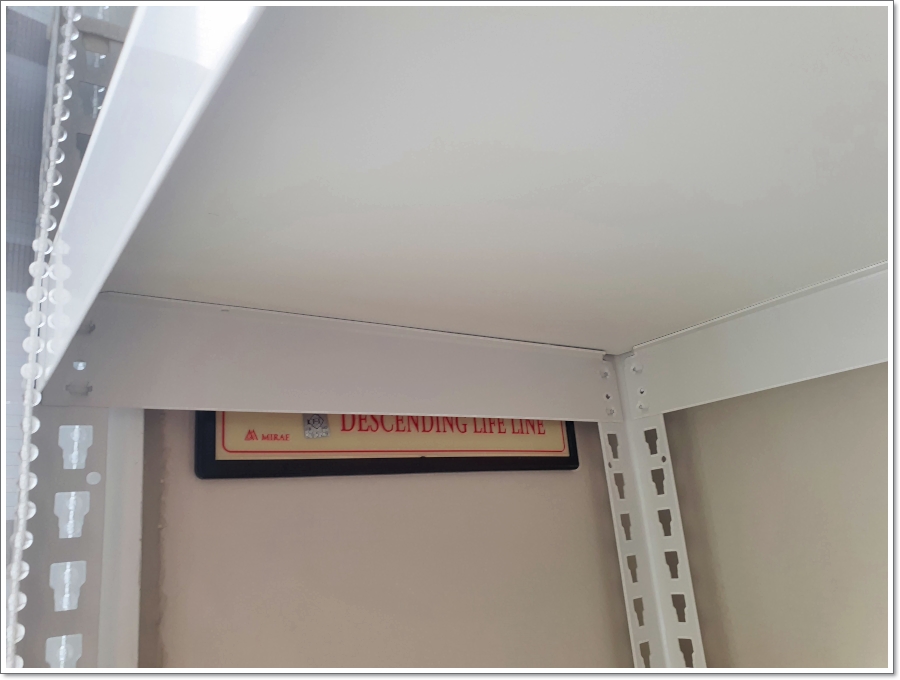 스피드 랙의 철제 앵글 부를 전부 체결하고 나면 함께 포장되어 온 나무 선반을 설치합니다.