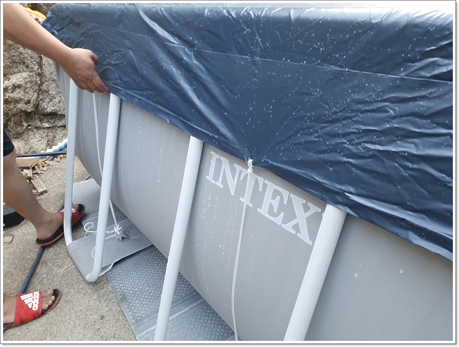 다 놀고 난 뒤에는 물을 버리긴 아까우니 커버를 씌어줍니다.