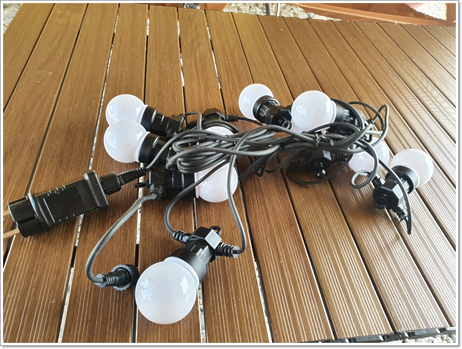 전구 지름이 50mm에 강화 플라스틱 재질이라 깨질 염려가 없고, 전체 길이가 무려 7.9M나 되는 제품입니다.