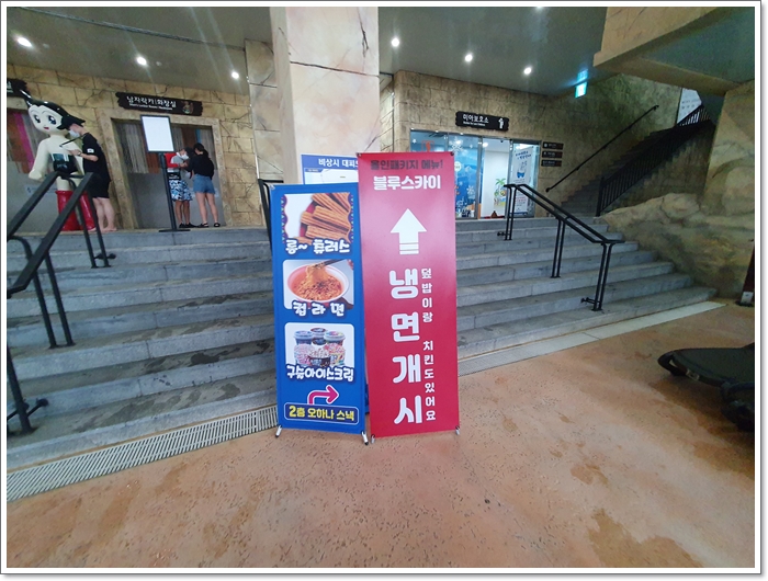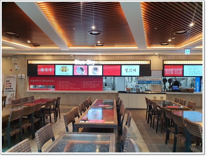 카페를 지나면 블루스카이가 나오는데 냉면과 불고기 덮밥을 먹을 수 있습니다.
