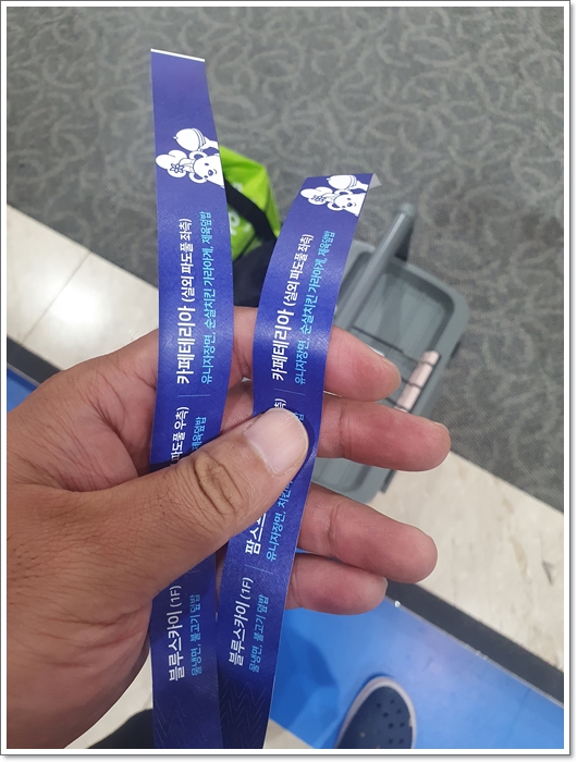 손목 입장권은 분실 우려가 있으니 손목에 걸어도 됩니다만 나중에 식사 시 제출해야 합니다.