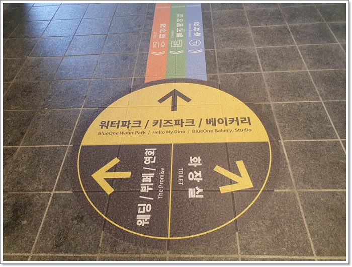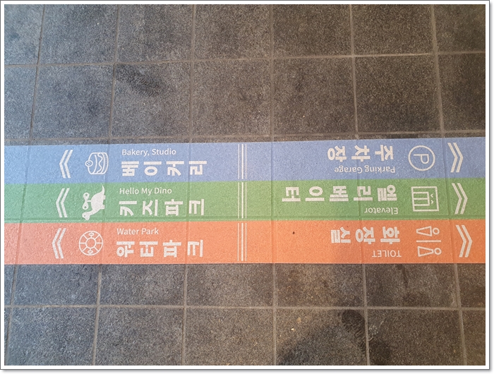 1층으로 내려오면 바닥에 이정표가 보입니다.