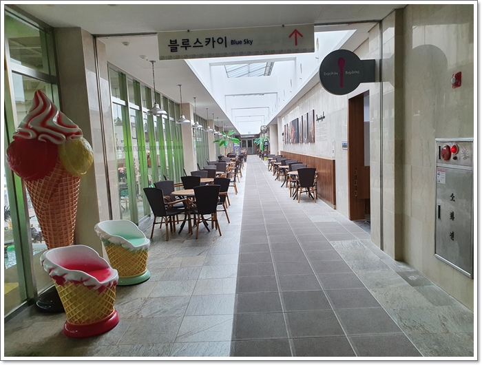 3층으로 올라서면 드롭탑 커피점과 배스킨라빈스 아이스크림 판매점, 그리고 식당이 위치해 있습니다.