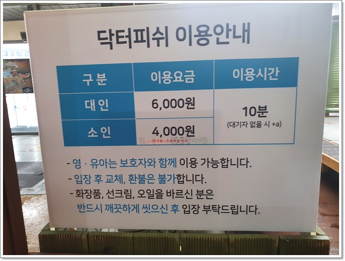 이미 닥터피시의 효과가 없는 걸로 알고 있는데, 아이가 너무 해보고 싶어 해서 한번 시켜줬습니다.