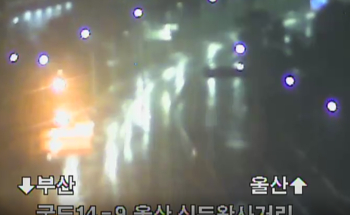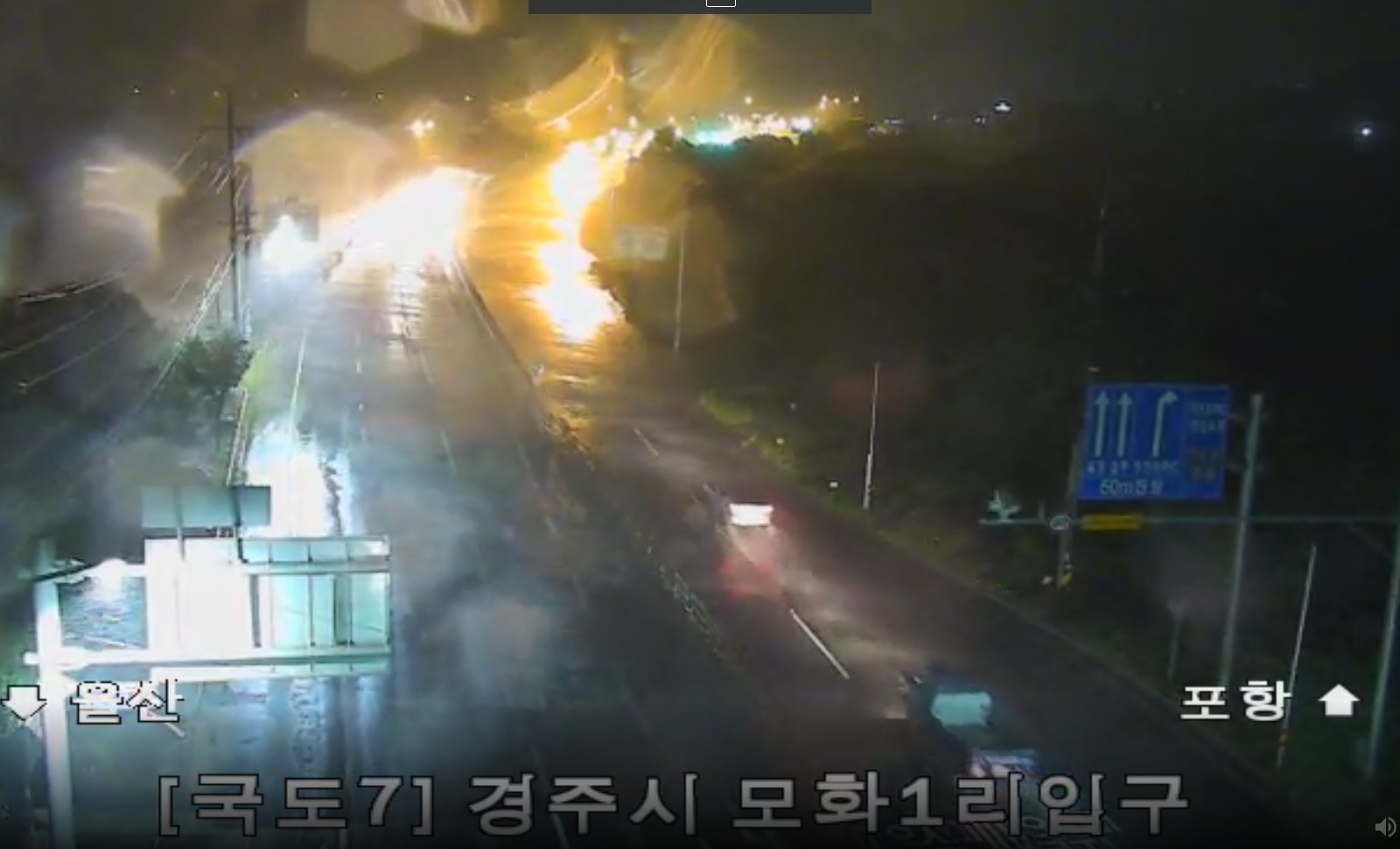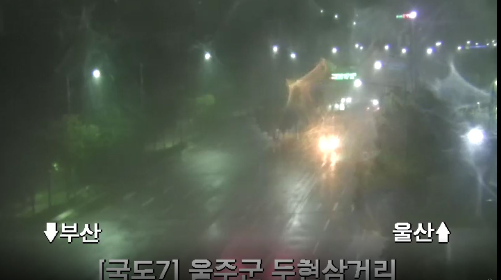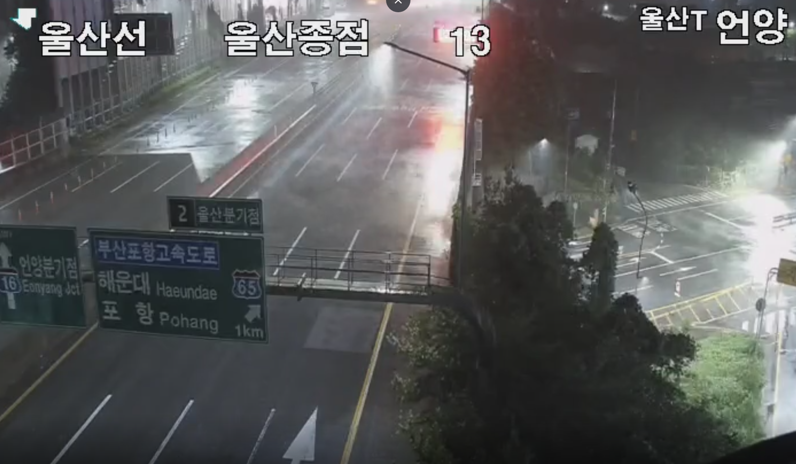 도로 CCTV로 외부 상황을 보자면 진행 중인 차량은 보이지 않고 어마어마한 비바람이 몰아치는 걸 확인할 수 있었습니다.