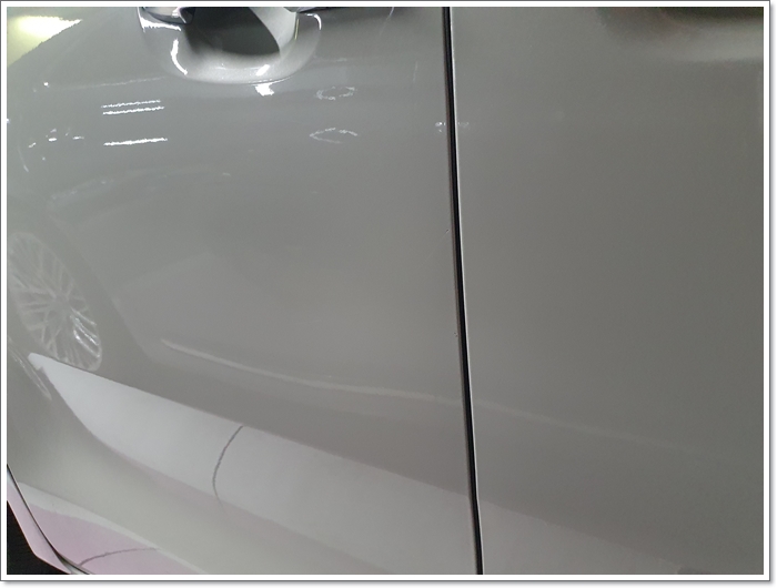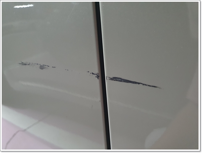시공 사진은 없는데 굵은 흠집 제거제를 시작으로 긁힌 부위에 살짝 묻힌다음 30초 정도 뜸을 들이고 가로 세로로 열심히 닦았습니다.