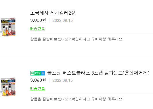 하지만 불스원 3 스탭 컴파운드로 한번 해결해보고자 인터넷에서 주문을 하였습니다.