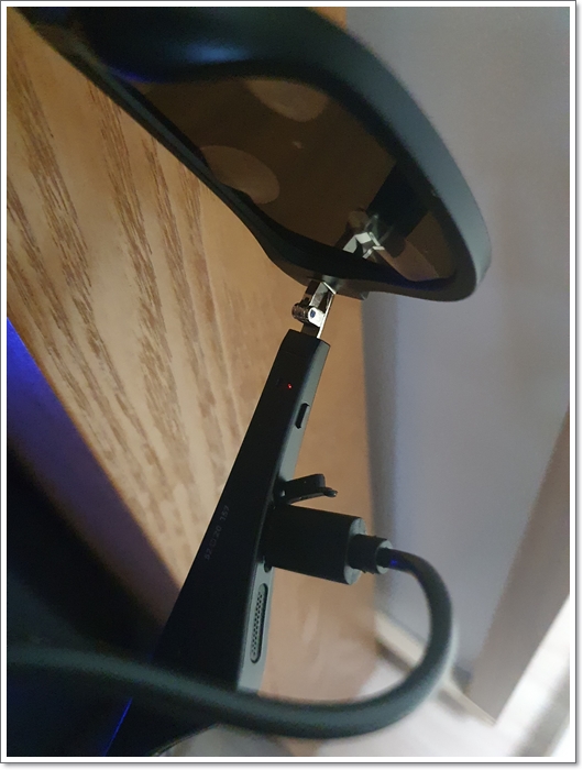 충전 중에는 이렇게 푸른색 LED 등이 점등되어 충전상태를 알려줍니다.