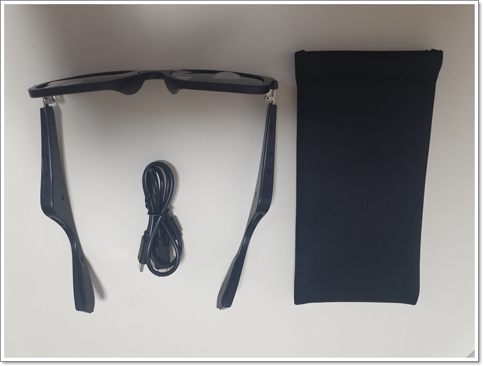 안에는 선글라스형 이어폰인 SKY FIT SG1, 파우치, 전용 충전 케이블이 들어있었고,