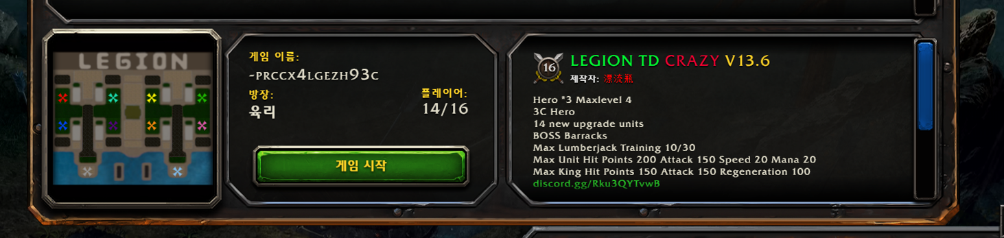 그리고 레기온 크레이지모드를 하다보면 튕기는데 이건 게임을 한판하게되면 껏다가 다시접속해주어야 어느정도 안정성있게 진행이 가능하니 참조하시기 바랍니다.